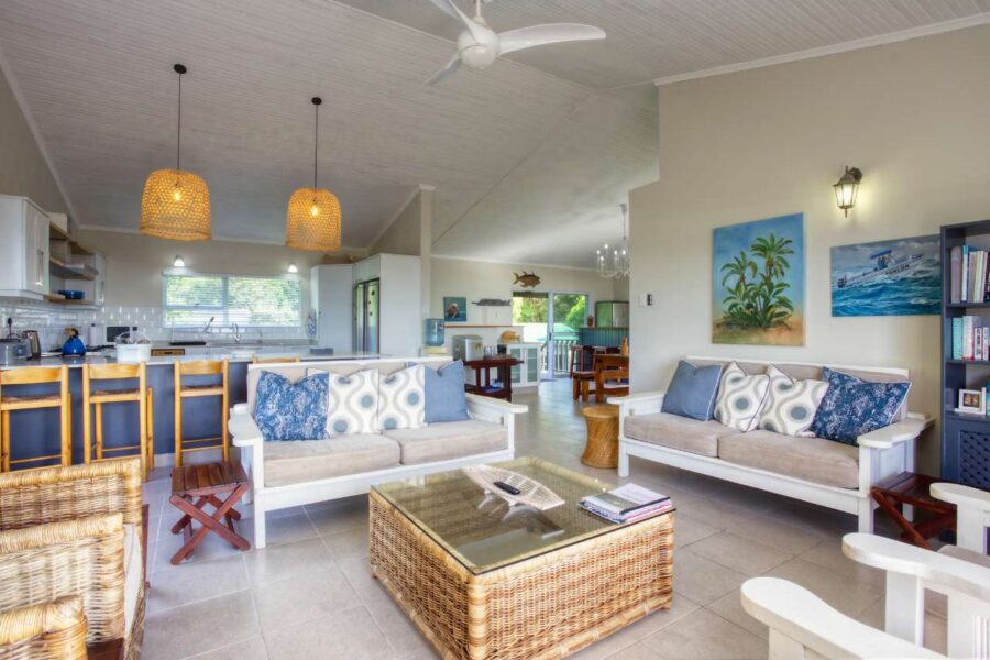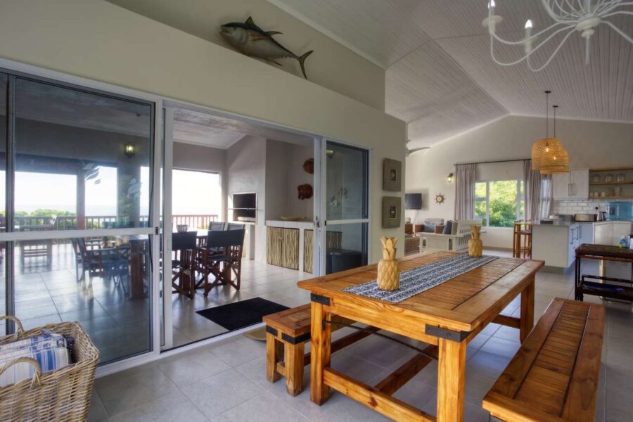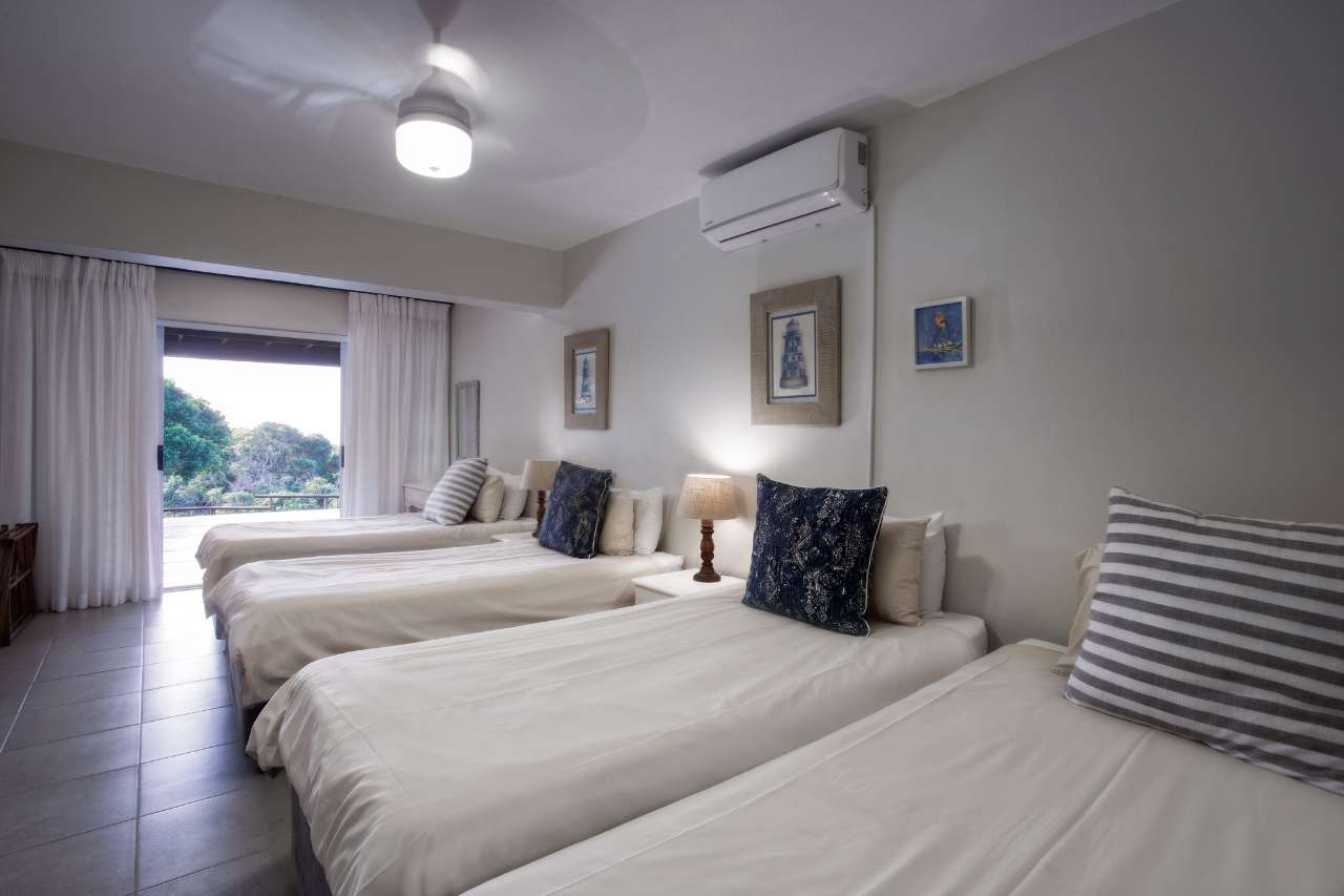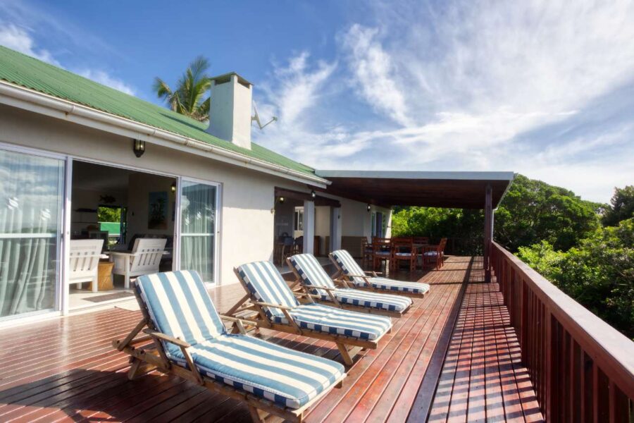 A spacious beachfront home on the pristine Ponta Malongane beach, just a 30-minute (16 km) 4x4 drive from the Kosi Bay border. The house comfortably sleeps 10 guests, or up to 12 with children or teenagers, and has recently been upgraded with a new fridge/freezer, two queen beds, and refreshed soft furnishings. The main house includes an en-suite queen bedroom, an en-suite twin bedroom, and a dormitory-style room with four single beds, a separate bathroom, and air-conditioning. The annexure offers an additional en-suite queen room and an en-suite twin room, all supplied with mosquito nets; main house beds receive weekly mosquito control and have plug-in repellents. The upstairs level features an open-plan kitchen, dining area, small bar, and sitting room with TV/DStv, plus a fully equipped kitchen with a gas stove, ample fridge/freezer space, ice machine, and reverse osmosis water filter. Outdoor spaces include an upper deck with seating, dining, and a built-in braai, as well as a lower deck with a plunge pool, sun loungers, and a gazebo. A laundry and storage area offers an extra fridge/freezer, general storage, and a dedicated freezer for fish or bait.