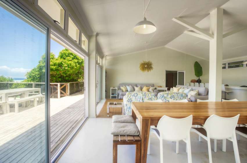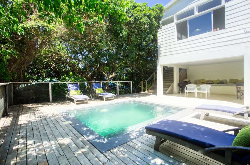 This beautifully designed beachfront holiday home in Kangela Estate, Ponta Malongane, offers the perfect blend of relaxation, comfort, and natural charm. The main lodge features a spacious open-plan living area that flows onto a large deck with sweeping sea views, a well-equipped kitchen, bar, and dining area seating 12. Four private glass-fronted ensuite chalets, connected by wooden walkways, provide serene forest views, while a fifth bedroom in the main lodge accommodates extra guests—sleeping up to 12 people in total. Each room includes crisp percale linen, towels, mosquito nets, and ceiling fans. The home runs on a solar-powered hot water system with electric backup and features eco-friendly septic toilets. Amenities include two fridges, a deep freeze, ice maker, dishwasher, washing machine, gas and charcoal braais, and a boma beside the pool. Guests can enjoy a beach shower, filtered drinking water, and two kayaks for exploring the ocean—everything needed for a carefree, sun-soaked Mozambican getaway.
